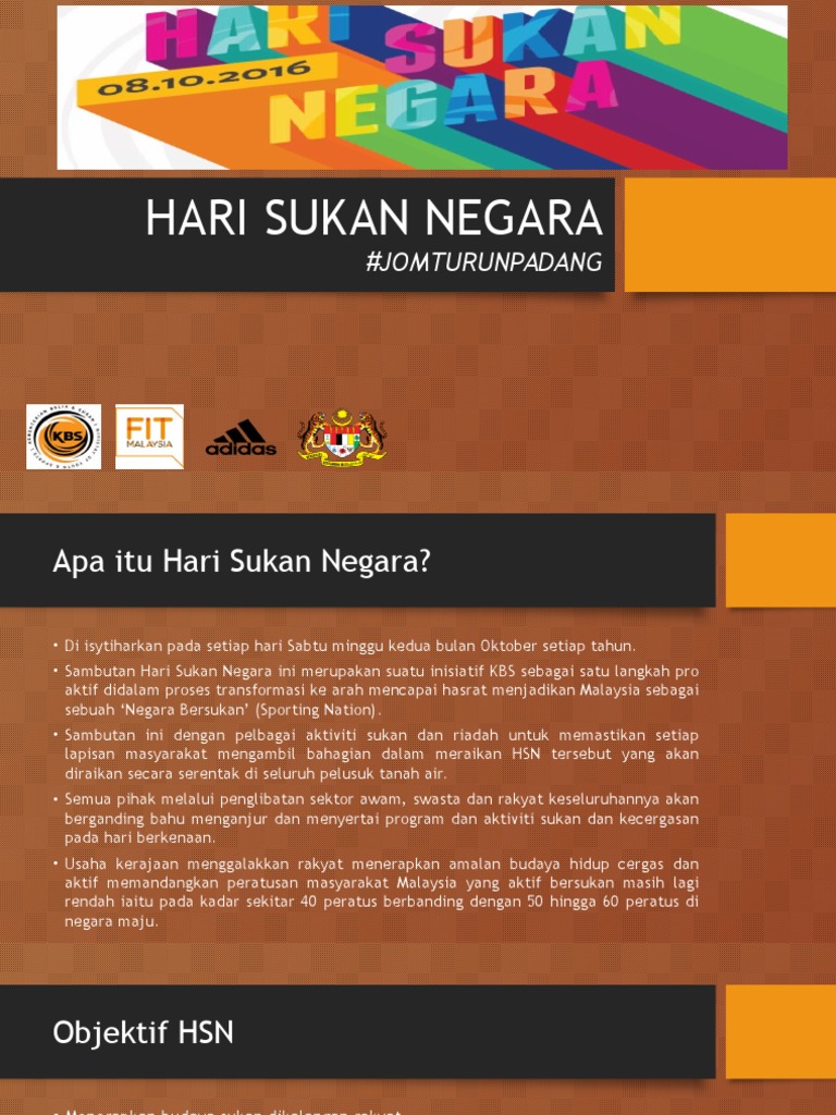 Sep 26 2018 hari sukan negara disambut setiap tahun pada hari sabtu kedua dalam bulan oktober. Sukan terdiri daripada aktiviti fizikal yang dilakukan untuk pelbagai tujuan untuk pertandingan keseronokan pembangunan kemahiran kecemerlangan dan sebagainya. APA ITU HARI SUKAN NEGARA.